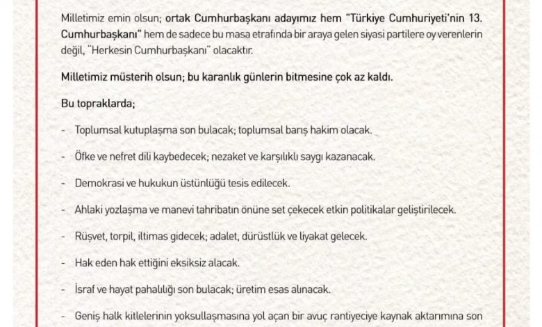 6 SİYASİ PARTİ BİR ARAYA GELEREK ORTAK METİN HAZIRLADI ORTAK METİNDE ŞUNLAR VAR