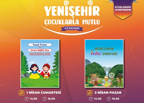 “Pamuk Prenses ve Kırmızı Başlıklı Kızın Maceraları” oyunu 1 Nisan Cumartesi günü 14.00 ve 16.00 saatlerinde, Ağaçların Perili Dünyası oyunu ise 2 Nisan Pazar günü 14.00 ve 16.00 saatlerinde 4-11 yaş arası çocuklar için sahnelenecek. Yenişehir Belediye Başkanı Abdullah Özyiğit, “Sosyal demokrat belediyeler olarak dayanışmayla deprem felaketinin meydana getirdiği tüm olumsuzluklara karşı mücadele ediyoruz. İlk günden bu yana hem barınma hem de temel ihtiyaç malzemesi desteğiyle büyük bir özveriyle yurttaşlarımıza destek veriyoruz. Deprem bölgesinden kentimize on binlerce yurttaşımız geldi. Burada yaşamlarına devam ediyorlar, biz de tüm imkanlarımızla yanlarında oluyoruz. Şeker Tiyatro Topluluğu ekibi de deprem mağdurlarından, sahnelerimizi kendilerine açtık. Oyunlarımız çocuklarımız için ücretsiz olacak. Tüm çocuklarımızı bekliyoruz. Dün ayrıca 27 Mart Dünya Tiyatro Günü’nü kutladık, bu vesileyle tüm tiyatro emekçilerini ve sanata değer katan herkesi saygıyla selamlıyorum.”diye konuştu.