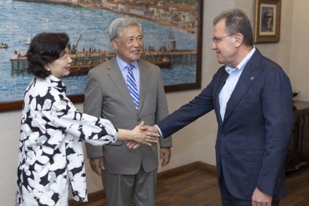 Dünyaca ünlü mimar ve şehir plancısı, Dünya Vatandaşları Örgütü Başkanı (World Citizen Organization-WCO), İpek Yolu Küresel Birliği Başkanı ve İpek Yolu Belediye Başkanları Forumu Başkanı Dr. Younghoon Kwaak, Mersin Büyükşehir Belediye Başkanı Vahap Seçer’e nezaket ziyaretinde bulundu. Görüşmede Mersin’in şehir planları ile ilgili değerlendirmeler yapıldı.