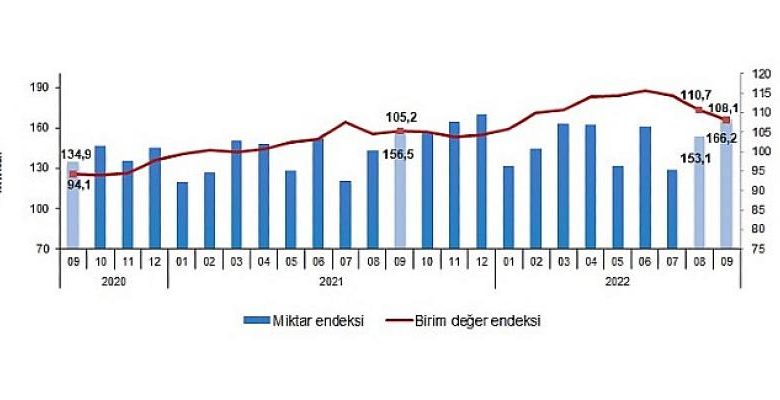 İhracat birim değer ve miktar endeksleri, Eylül 2022