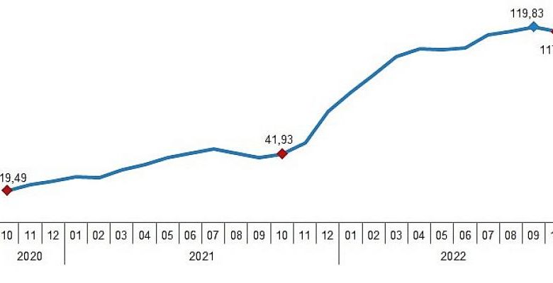 İnşaat maliyet endeksi, 2022 yılı Ekim ayında bir önceki aya göre 3,44, bir önceki yılın aynı ayına göre 117,07 arttı. Bir önceki aya göre malzeme endeksi 3,88, işçilik endeksi 1,94 arttı. Ayrıca bir önceki yılın aynı ayına göre malzeme endeksi 128,41, işçilik endeksi 85,65 arttı.
