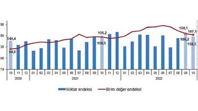İhracat birim değer endeksi Ekim ayında bir önceki yılın aynı ayına göre 1,8 arttı.