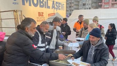 Antalya Büyükşehir Belediyesi’nin Hatay’ın Uğur Mumcu Meydanı’nda kurduğu çadırkentte Miraç Kandili nedeniyle helva dağıtıldı.